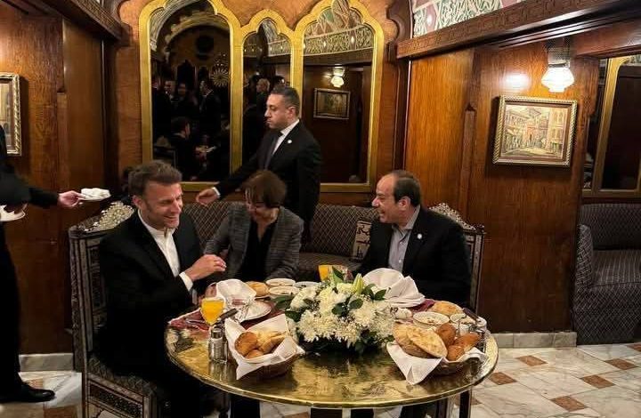 في أحضان التاريخ، تناول الرئيس الفرنسي إيمانويل ماكرون والرئيس عبد الفتاح السيسي العشاء في مطعم نجيب محفوظ الشهير بشارع خان الخليلي. اللقاء جمع بين الزعيمين في أجواء القاهرة الأصيلة، حيث استمتعا بالطعام في واحدة من أبرز المناطق التاريخية بالعاصمة المصرية.