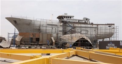الفريق أسامة ربيع يتفقد أعمال بناء قاطرات “عزم” بشركة قناة السويس بقوة شد 90 طنً
