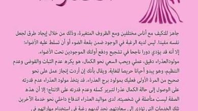 حالتك المزاجية في تحسن، وقد تتلقى دعمًا غير متوقع من شخص قريب. اليوم مناسب للراحة وإعادة ترتيب الأولويات.👍