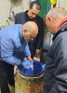 وتم المرور على محلات الجزارة والمطاعم والثلاجات ومحلات الدواجن بدائرة الشهداء