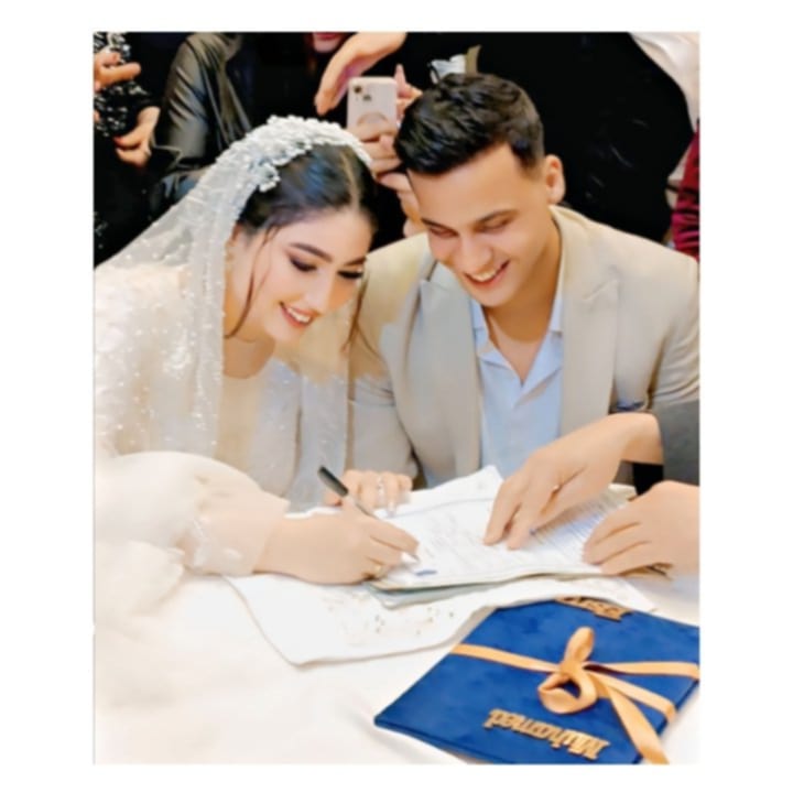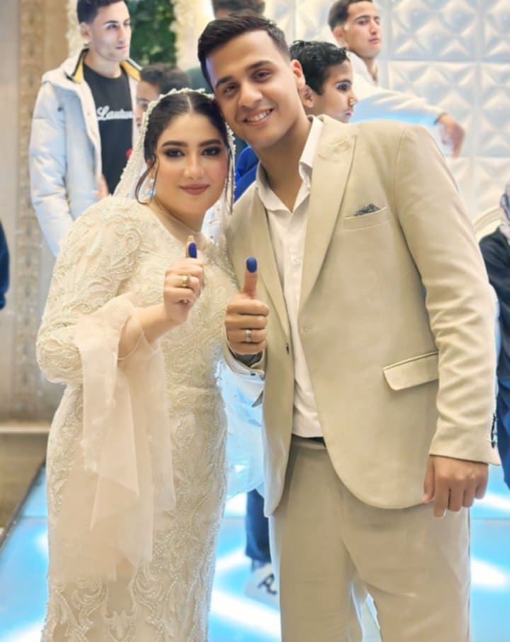 مع خالص تمنياتنا للعروسين بأطيب الأمنيات وأرق التهانى وأن يجمع الله بينهما فى خير ويبارك لهما ويبارك عليهما ويقيهما كل الشرور ويرزقهم الفرح والسعادة… وعقبال الزفاف السعيد.