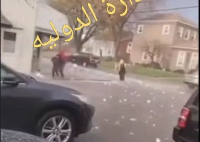 تُظهر لحظة سقوط قطعة الثلج، حيث نجا المتواجدون بأعجوبة من إصابات خطيرة، بينما أصيب بعضهم بكدمات خفيفة نتيجة تطاير أجزاء من الجليد.