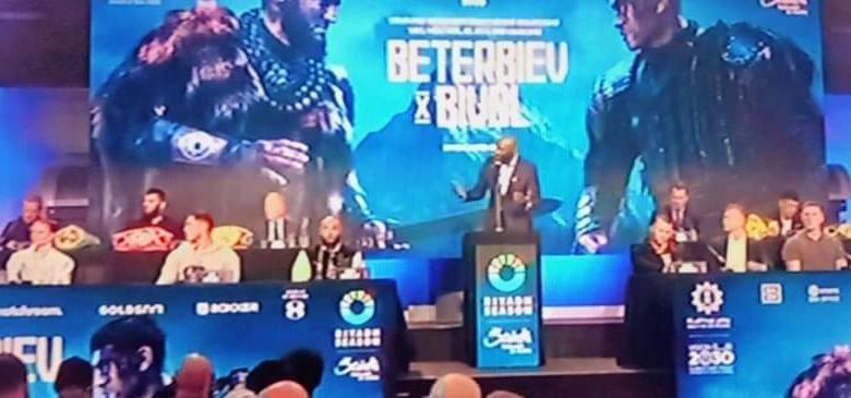 شهد امس الأربعاء بموسم الرياض بقاعة المؤتمرات لندن أكبر مؤتمر بحضور لا يقل عن 8ملاكمى قدامة وحوالى 10ملاكمين من جميع الأوزان على مستوى العالم الذين ابهرونا بنزالات القوية علي مدار أعوام وتم الإعلان عن نزال جديد يوم 12أكتوبر المقبل على حزام وزن (الثقيل الخفيف) بين البطل العالمي بيفول والبطل الأسطورة بيتر بييف وشهد المؤتمر نقاشات راقية بين الملاكمين الحضور بجمال موسم الرياض فى ثوبه الجديد في فرنسا وأحداث لعبة الملاكمة واقتراحاتهم