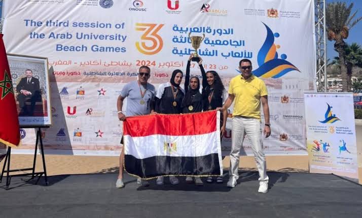 هنأ الدكتور أيمن عاشور وزير التعليم العالي والبحث العلمي ورئيس الاتحاد الرياضي للجامعات بعثة منتخب مصر للجامعات على أدائها المتميز، والفوز بالميدالية الذهبية، والمركز الأول في منافسات الكرة الطائرة الشاطئية (آنسات)، والميدالية البرونزية في كرة القدم الشاطئية (رجال)، بالإضافة إلى تحقيق المركز الرابع في الكرة الطائرة الشاطئية (رجال) بالدورة العربية الجامعية الثالثة للألعاب الشاطئية، والتي أقيمت في مدينة أغادير بالمغرب خلال الفترة من 23 إلى 27 أكتوبر الجاري، وشارك فيها العديد من شباب الجامعات العربية من سبع دول، هي: (مصر، المغرب، تونس، موريتانيا، ليبيا، سلطنة عمان، قطر)، وتنافست الفرق في ثلاث رياضات متنوعة، هي: الكرة الطائرة الشاطئية “آنسات”، الكرة الطائرة الشاطئية “رجال”، وكرة القدم الشاطئية “رجال”